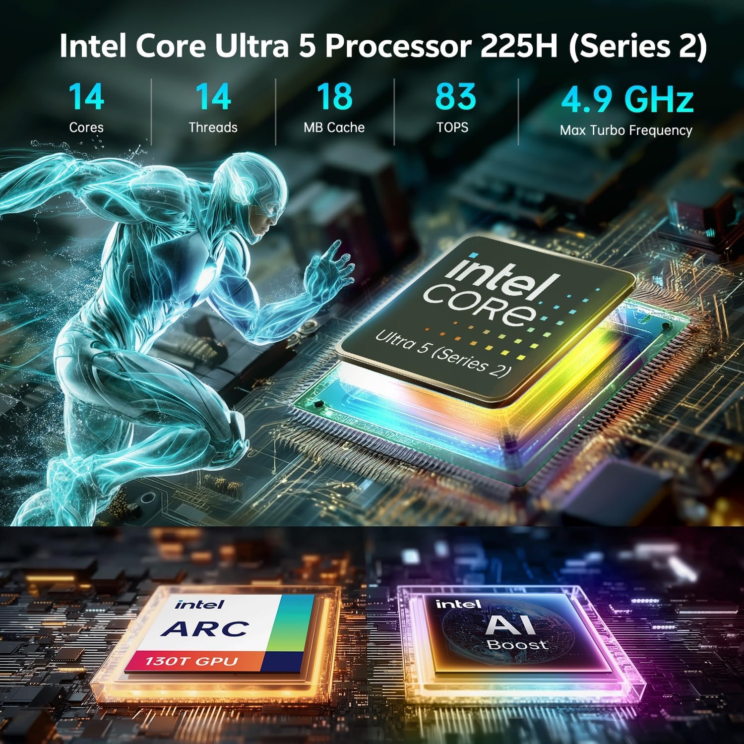 - 🚀 Powerful AI Performance in a Compact Design – Powered by Intel Series 2 Core Ultra 5 225H (14C/14T, up to 4.9GHz) and Intel Arc 130T GPU, this AI Mini PC delivers exceptional speed for multitasking, AI development, and creative workflows. With Win 11 Pro and support for 8K/Quad 4K HDR, this Mini Desktop PC ensures smooth, professional-grade performance in a compact form.