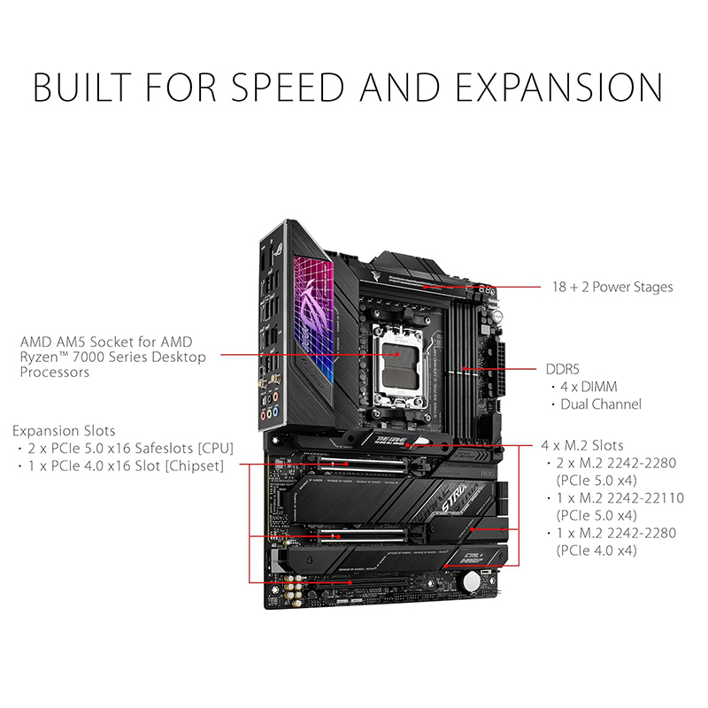 - AMD Socket AM5(LGA 1718) for AMD Ryzen 7000 Series Desktop Processors